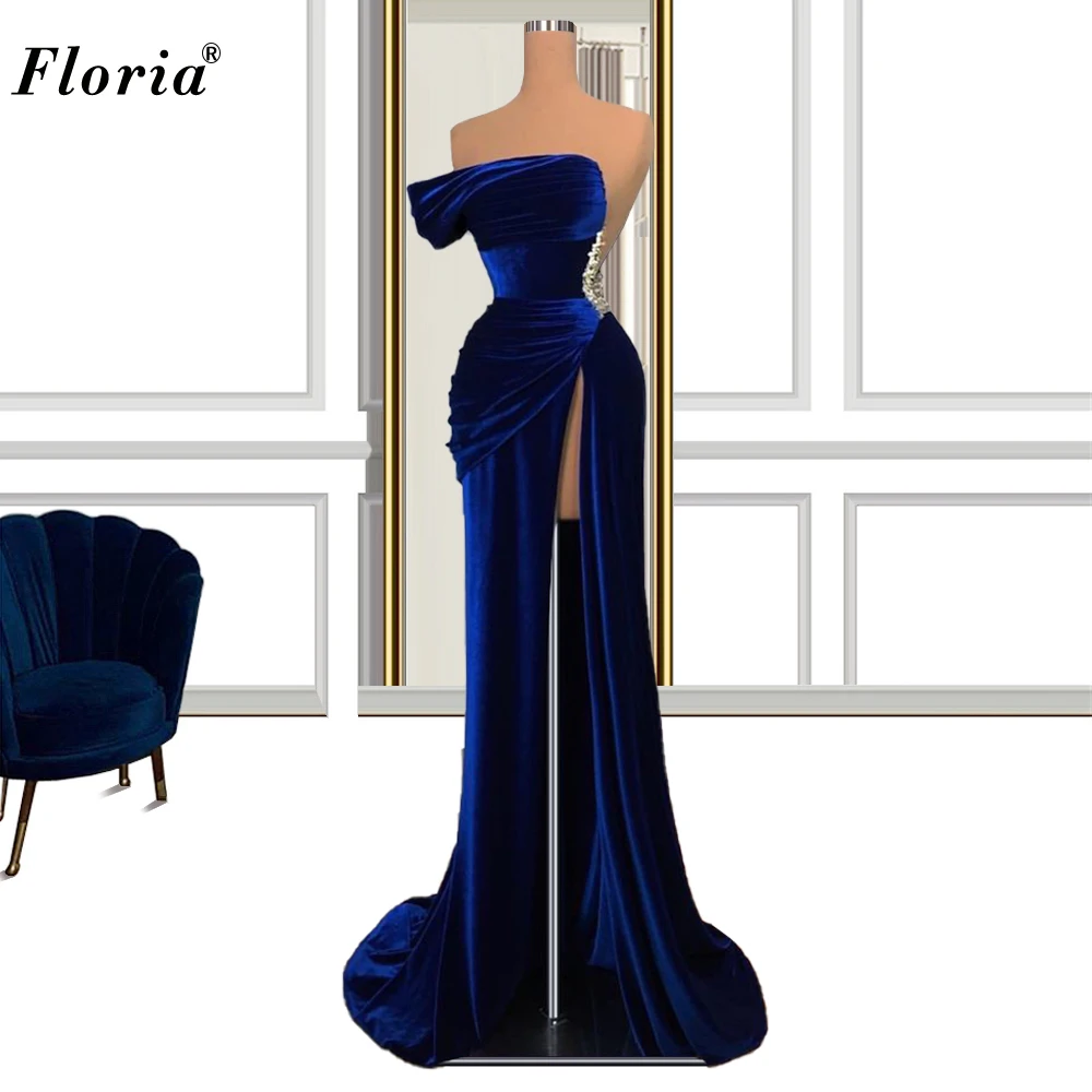 Vestidos De Fiesta Elegant Navy Blue Prom Dresses Mermaid Strapless Velvet Cocktail Dresses For Women Wedding Party Dresses Aliexpress